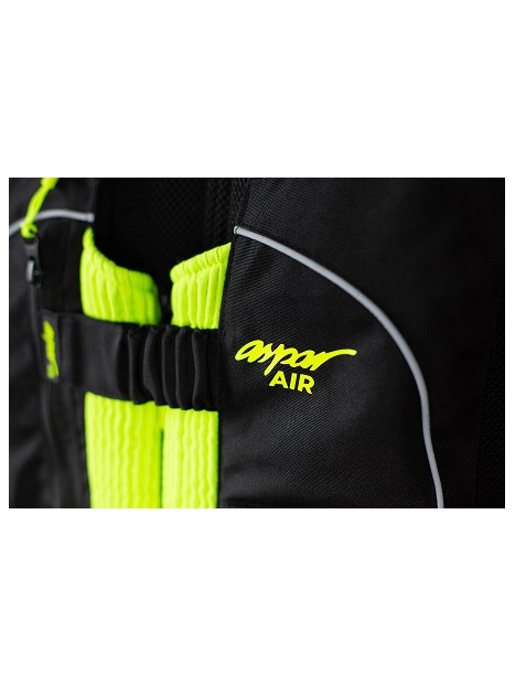 El sistema d'inflat de l'armilla coixí de seguretat Aspar Air és senzill i mecànic, i aconsegueix una velocitat d'activació i inflat complet de 200 mil·lisegons i superant les proves d'impacte, tallatge ( 100% protecció toràcica i 120% protecció d'esquena) i la resistència de la cinta al trencament.