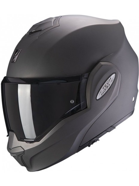 Gràcies a la seva obertura de mentonera a 180 graus aquest nou models de casc modular Scorpion Exo Tech Evo passa sense problemes la normativa P/J per la qual cosa podem fer servir el casc amb la mentonera abatuda sense problema