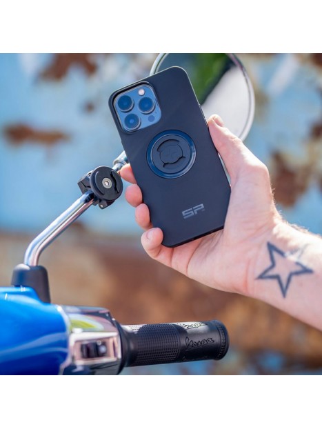 El suport per a smartphone per mirall retrovisor de moto SP Connect Mirror Mount us permet fixar el vostre SmartPhone en el vostre scooter o motocicleta en qüestió de segons.