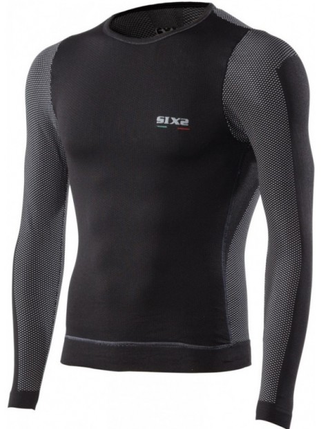 La samarreta tèrmica de coll rodó i màniga llarga amb protector paravent Windshell carbon Underwear de Six2 és transpirable i regula la temperatura corporal independentment de la condició climàtica. La tecnologia Air Shield de Sisx s'encarrega de protegir, en aquest cas la part frontal del tors, de l'aire fred gràcies a una subtil capa de fibra antivent transpirable que crea un micromatalàs d'aire que protegeix el cos sense provocar el clàssic "efecte hivernacle" que augmenta la sudoració.