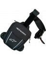 Se ajusta fácilmente a la pierna y la cadera mediante correas e incluye cinturón por si se utiliza con el mono de cuero.