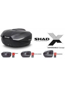 Nuevo concepto de maleta Shad para moto, preparada para guardar Dos cascos integrales de gran volumen.