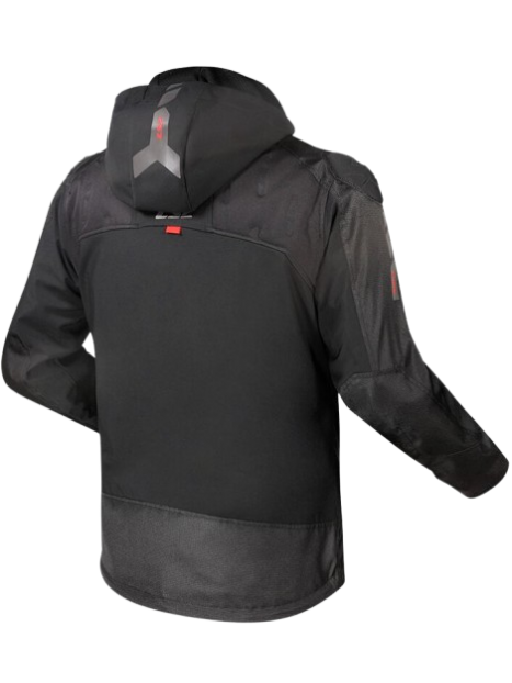 El cierre principal es una cremallera YKK con solapa antilluvia amplia, protegiendo frente al agua. También cuenta con capucha desmontable, muy útil si combinas la chaqueta con un uso urbano o al bajarte de la moto.
